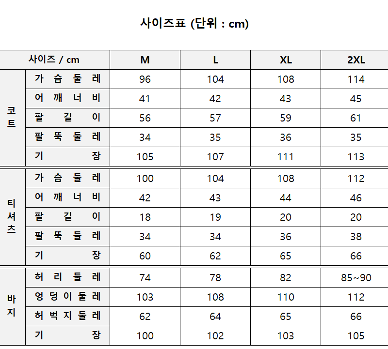 애매하신분들은 한 치수 크게 주문해주세요!