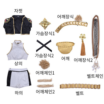 어깨체인1, 어깨체인2, 어깨, 어깨장식1, 어깨장식2, 벨트, 벨트체인 set
