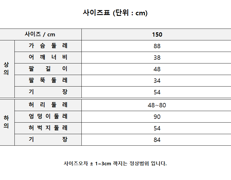 # 마네킹 키 145cm, 피팅사이즈 150