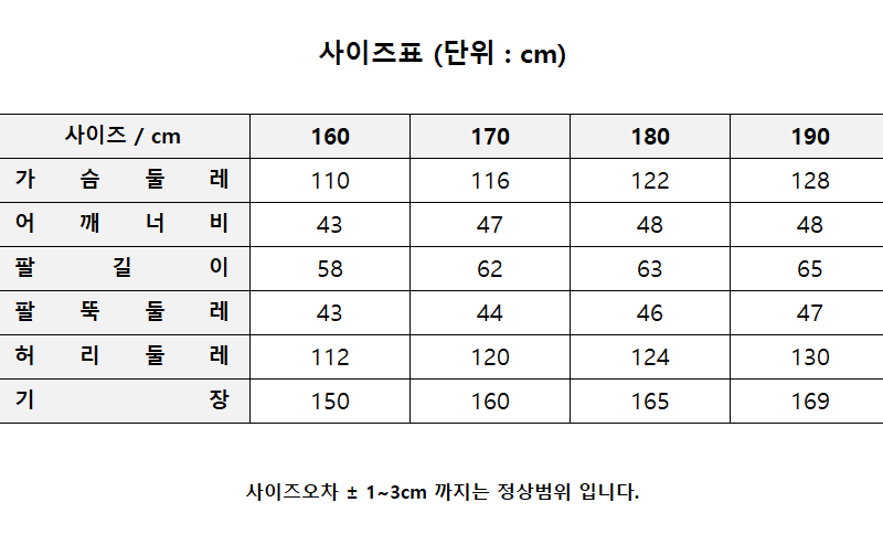 마네킹 키 175cm/  피팅사이즈 180