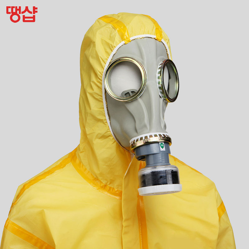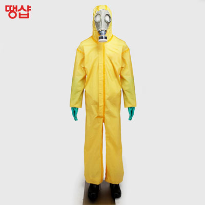 화학물질 작업자가 착용하는 화학물질 보호복, 방제복 입니다.
