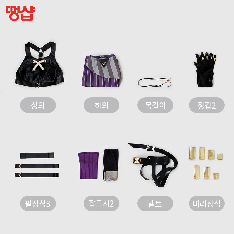 상의, 하의, 목걸이, 장갑2개, 팔장식3개, 팔토시2개, 벨트, 머리장식7개 set