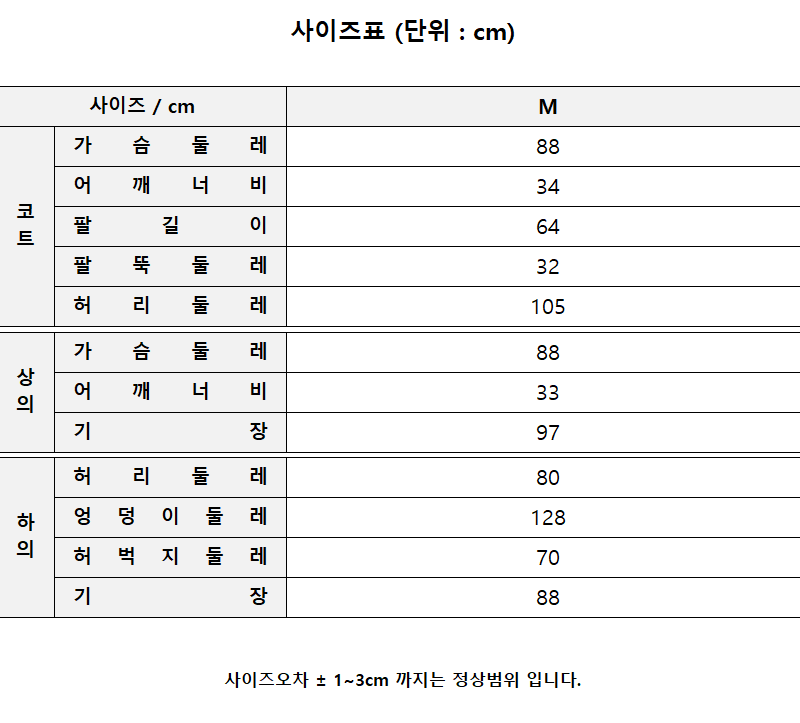코트, 상의, 하의, 허리띠 set